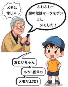 |  | おじいちゃんのスマホの画面 左下に電話のマークと横にスライドで応答が
